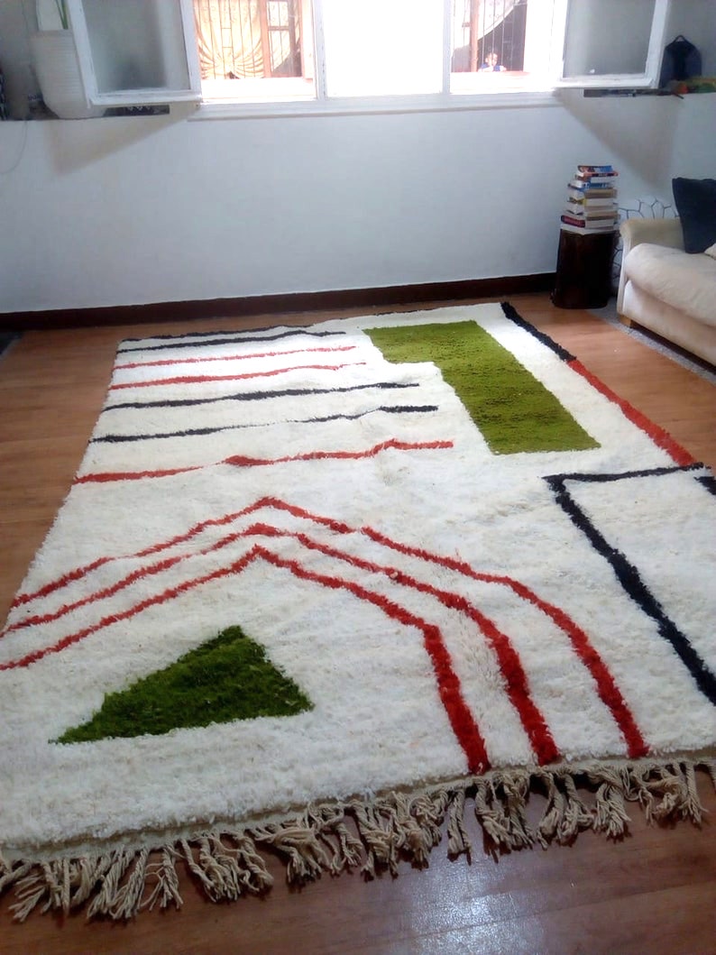 Real Azilal Berber Carpet - 308x200cm - 3-Seat Sofa - Natural Wool - SAUGS8