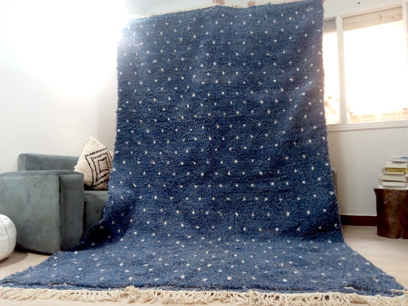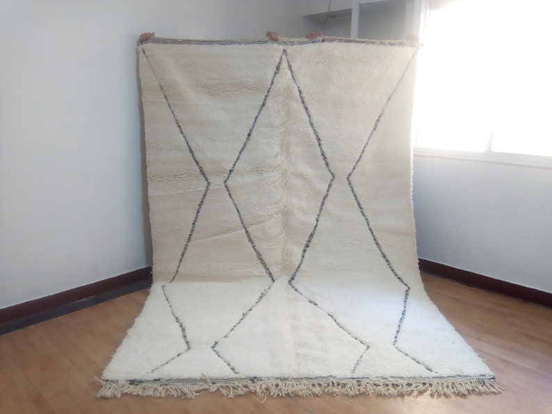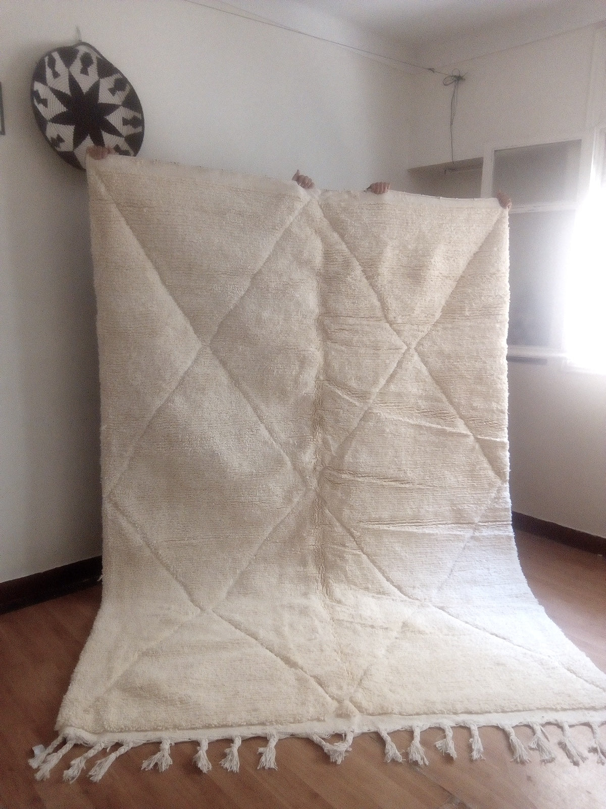 Real Azilal Berber Carpet - 308x203cm - 3-Seat Sofa - Natural Wool - HAUGD4