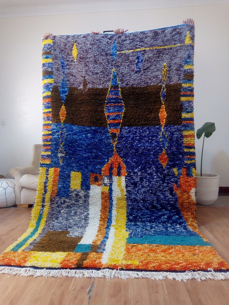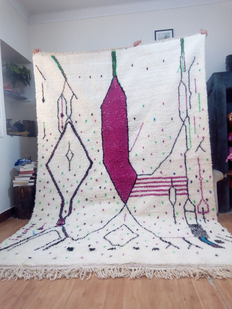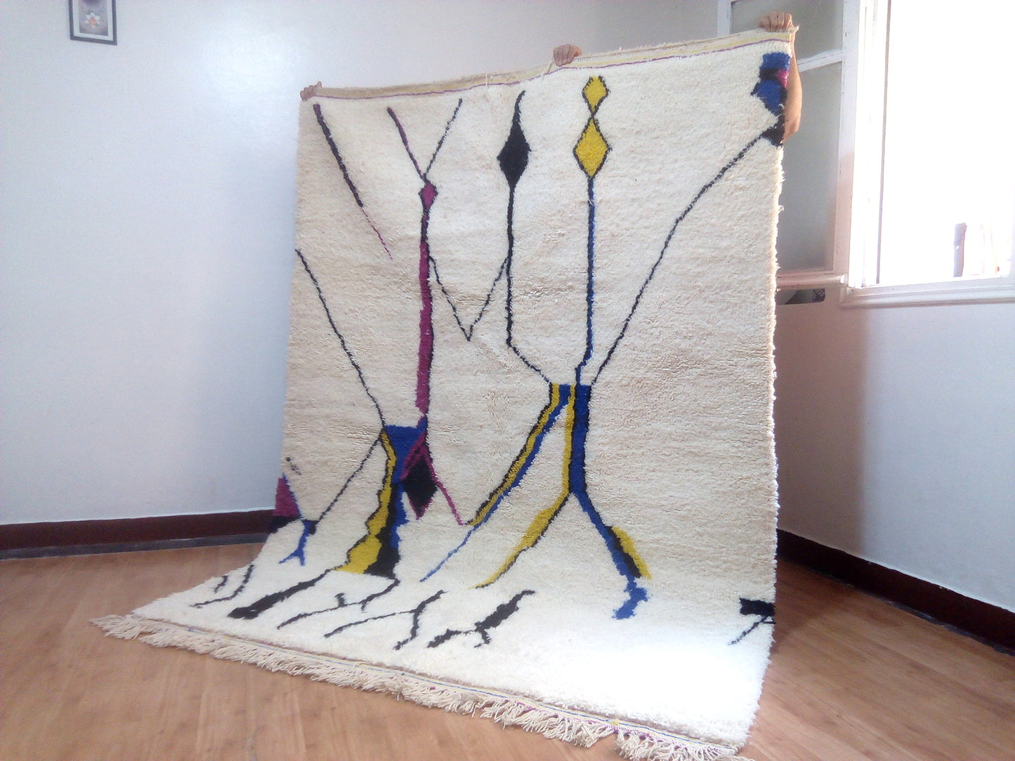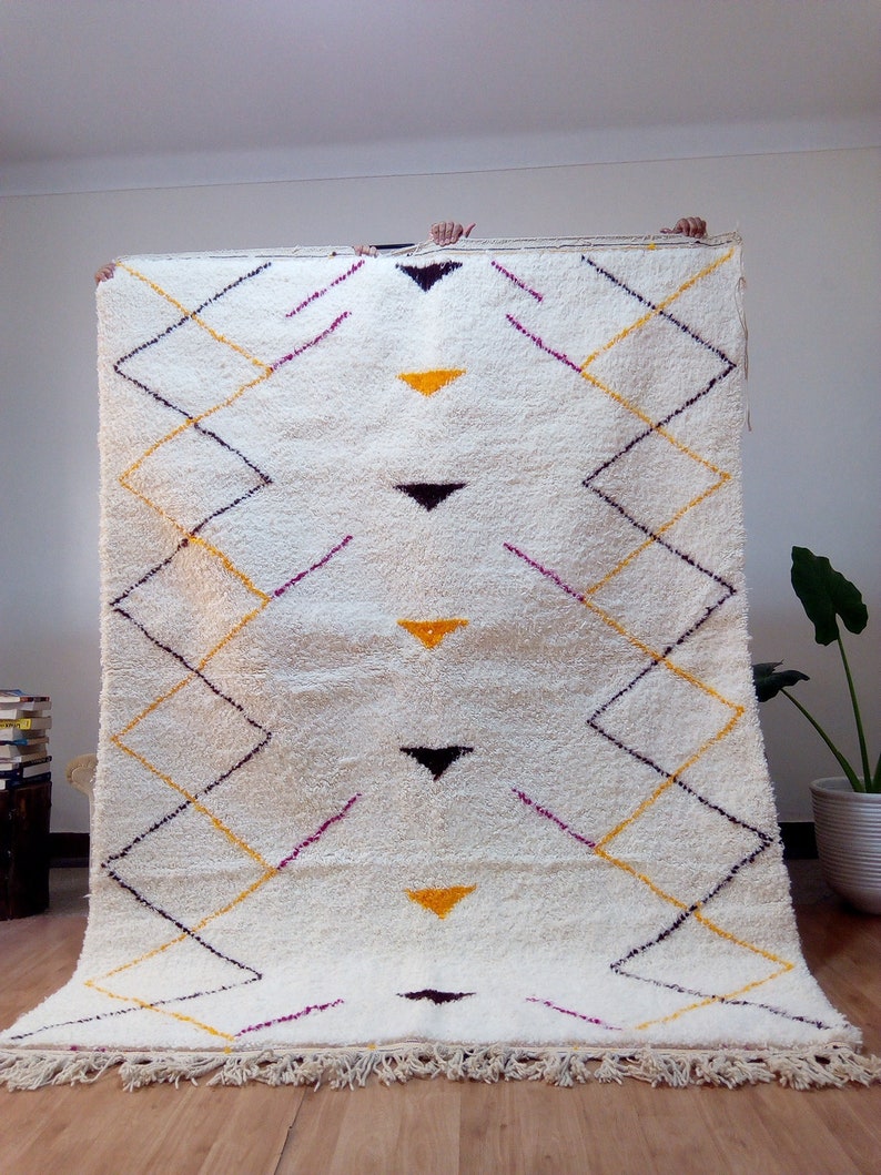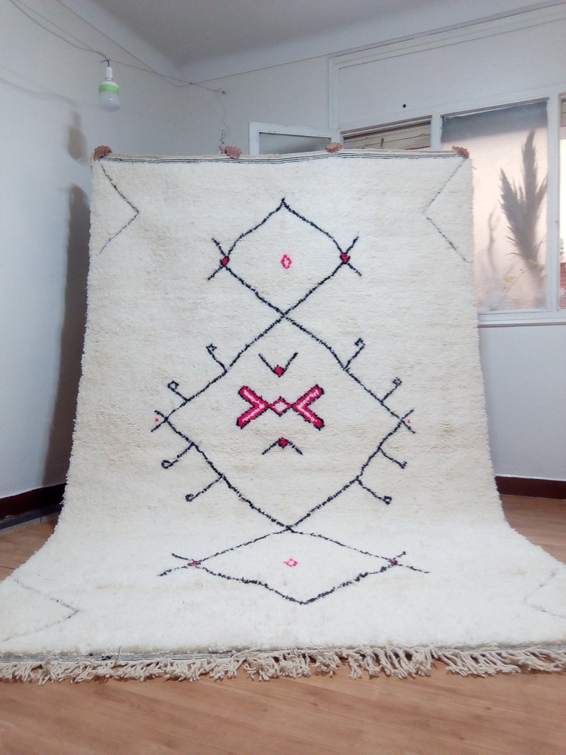 Real Azilal Berber Carpet - 308x200cm - 3-Seat Sofa - Natural Wool - SAUGS8