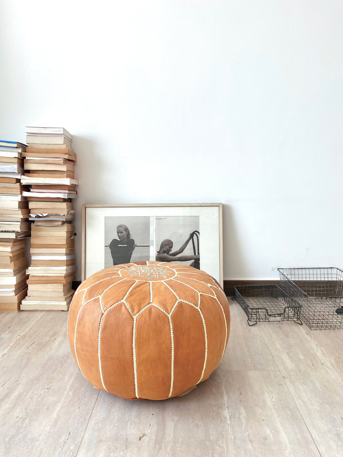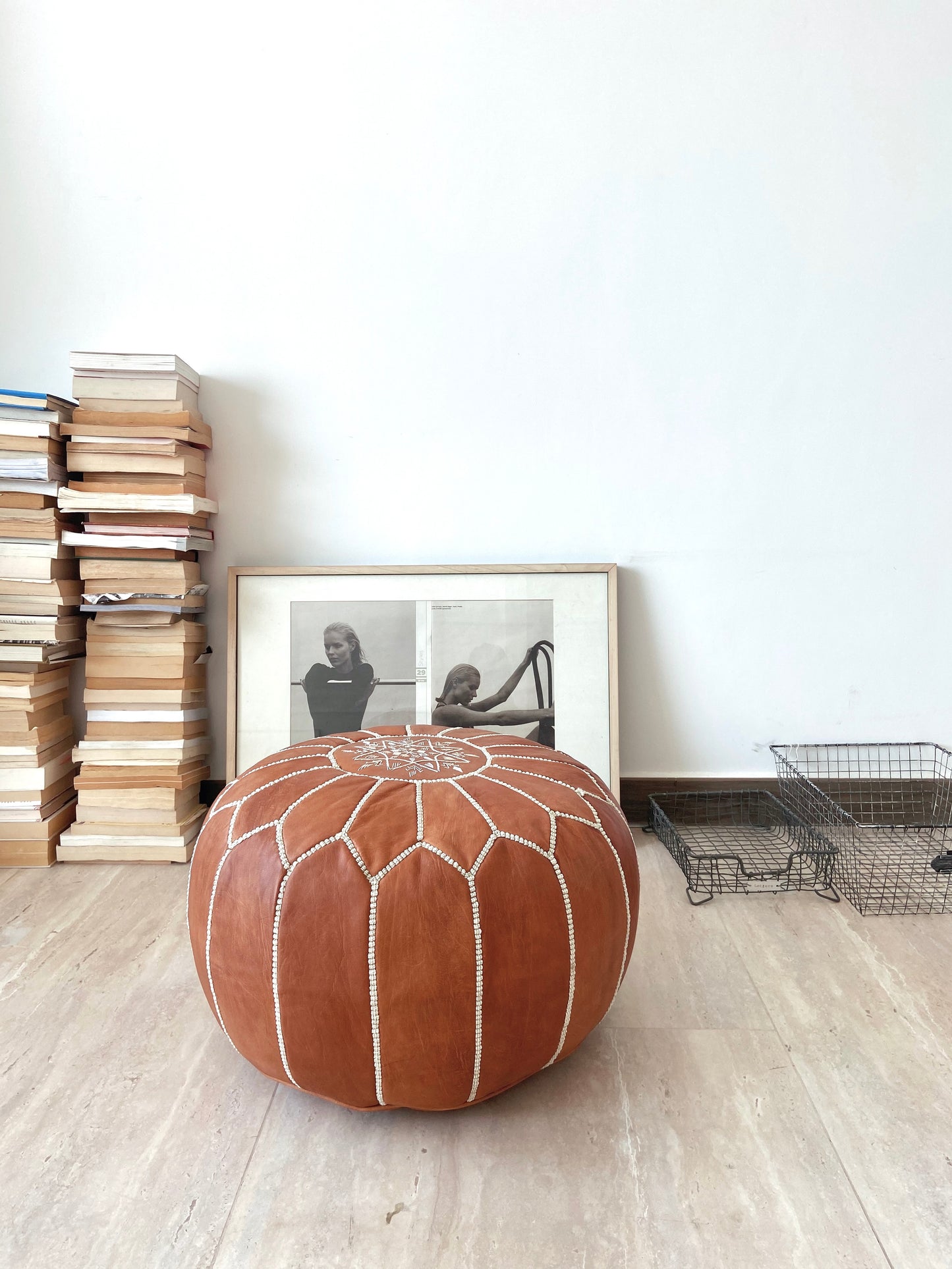 Leather Poufs Brown Pre-stuffed / Buy More Than 1, Get 5% OFF